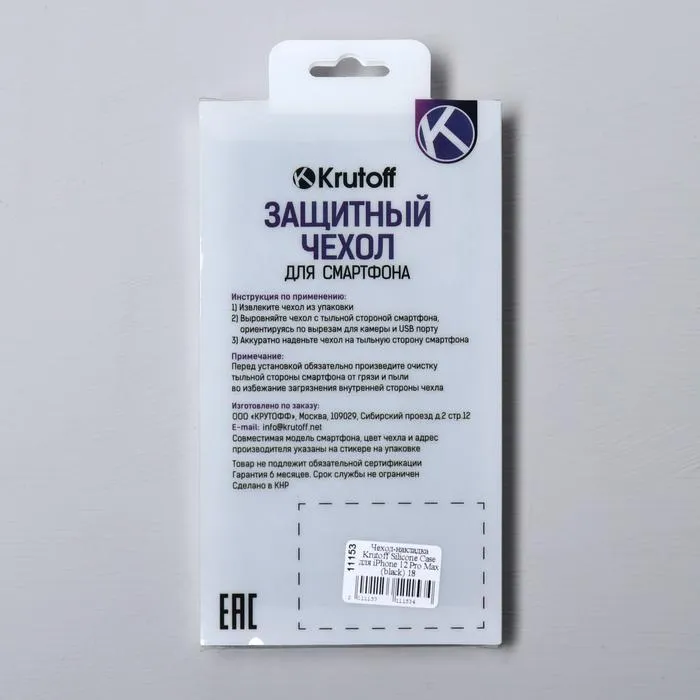 Чехол Krutoff, для iPhone 12 Pro Max, матовый, черный — Характеристики
