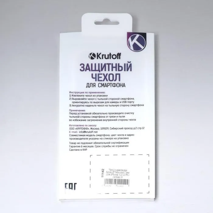 Чехол Krutoff, для iPhone 12/12 Pro, матовый, белый — Характеристики
