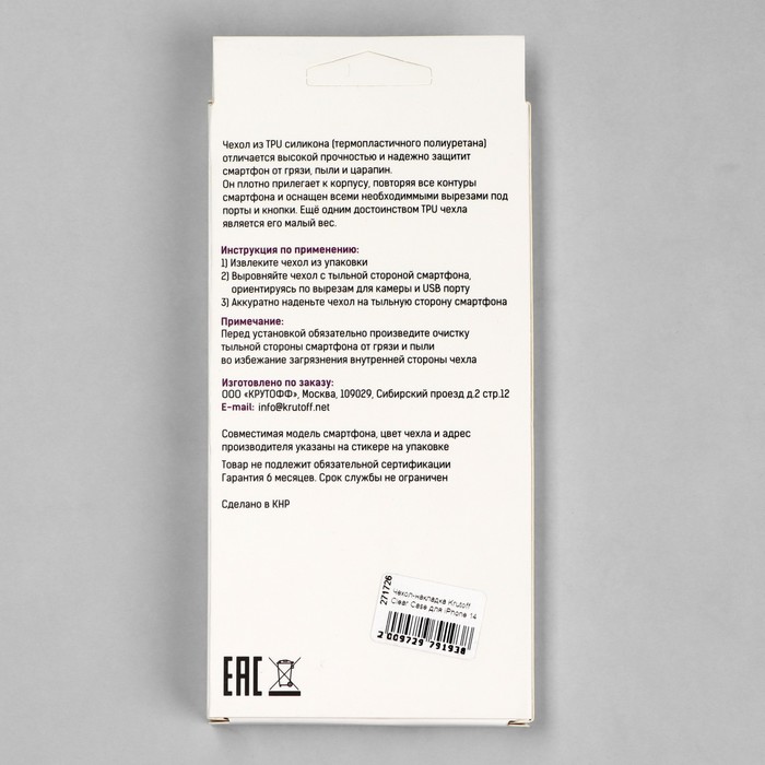Чехол Krutoff, для iPhone 14, силиконовый, прозрачный — Характеристики
