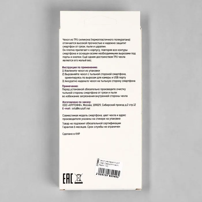 Чехол Krutoff, для Xiaomi Redmi 10C, силиконовый, прозрачный — Характеристики