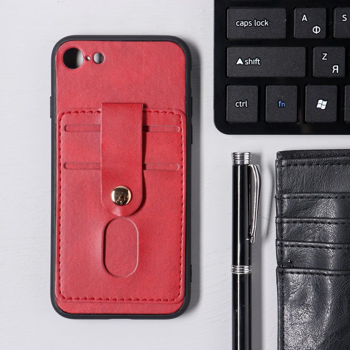 Чехол LuazON для iPhone 7/8/SE (2020), с отсеками под карты, кожзам, красный — Характеристики