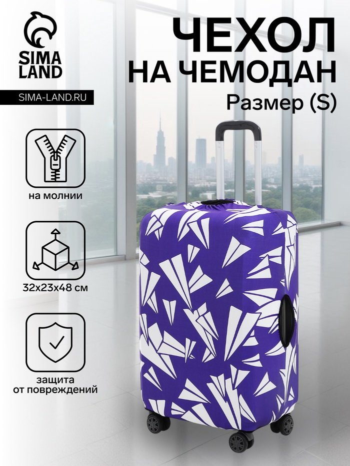 Чехол на чемодан на колёсах, 20" (S), с принтом, фиолетовый — Характеристики