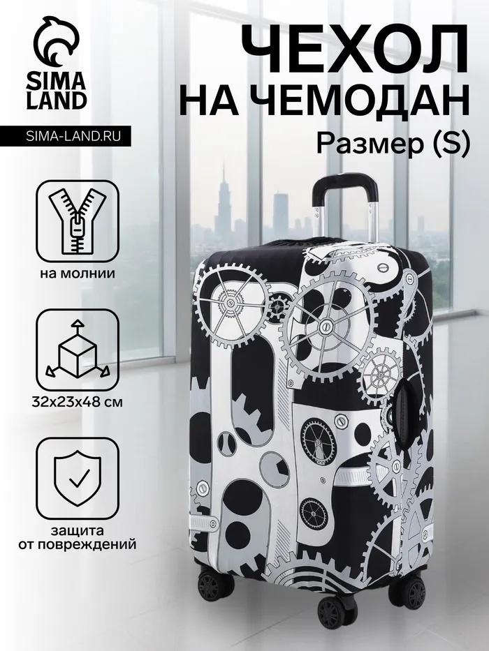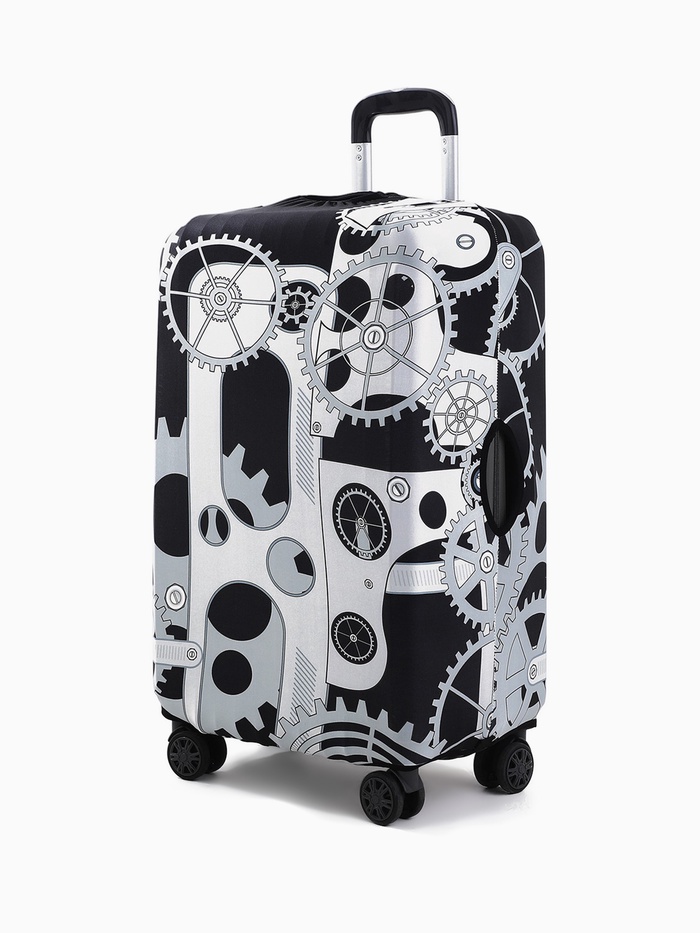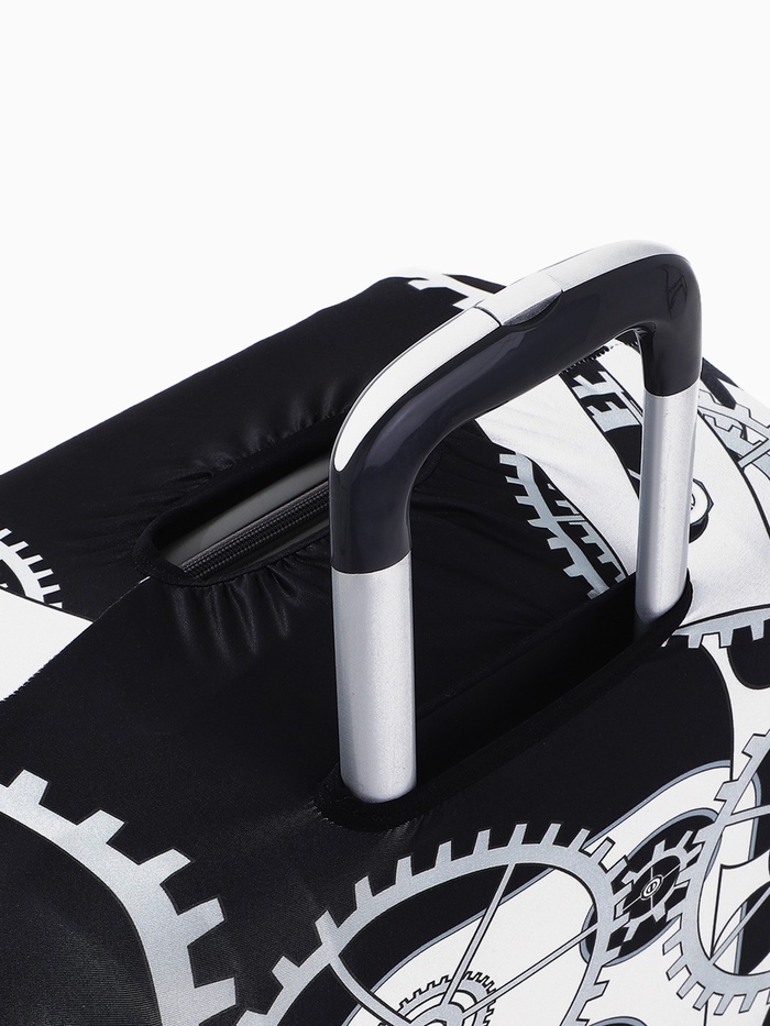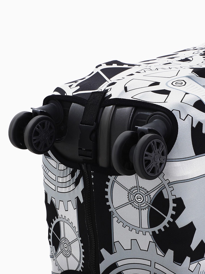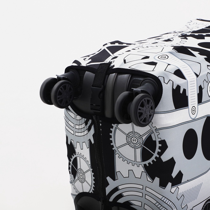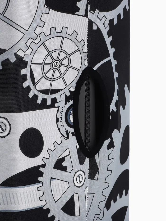 Чехол на чемодан на колёсах, 20" (S), с принтом «Шестерёнки», чёрный/серый — Характеристики
