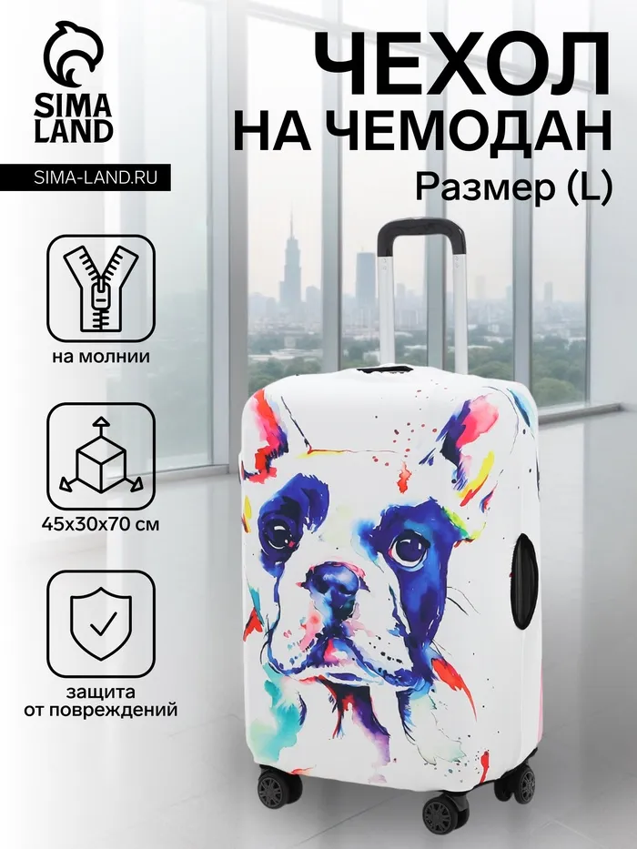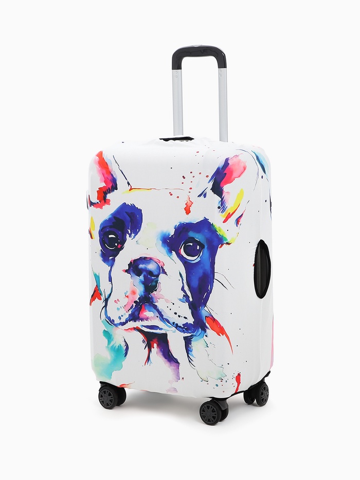 Чехол на чемодан на колёсах, 28" (L), с принтом «Бульдог», белый — Характеристики
