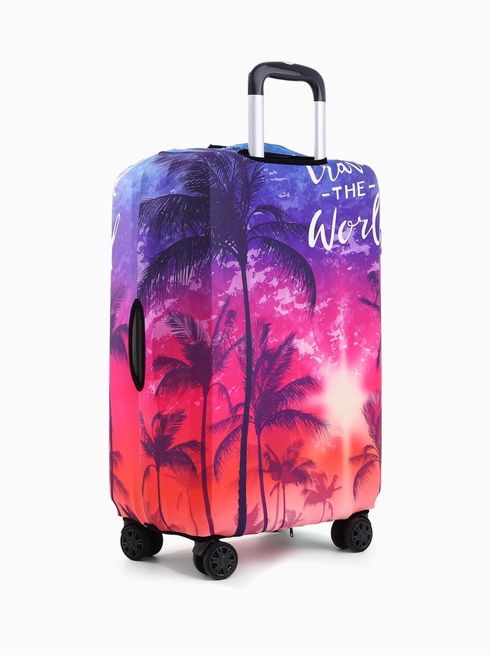 Чехол на чемодан на колёсах, 28" (L), с принтом «Майами», фиолетовый/разноцветный — Характеристики