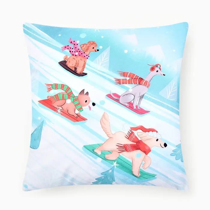 Чехол на подушку Этель "Snowboarding dogs" 40х40 см, 100% п/э, велюр — Характеристики