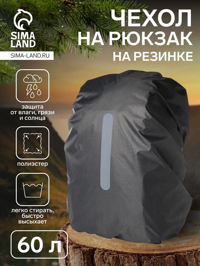 Чехол на рюкзак 60 л, со светоотражающей полосой, цвет серый — Характеристики