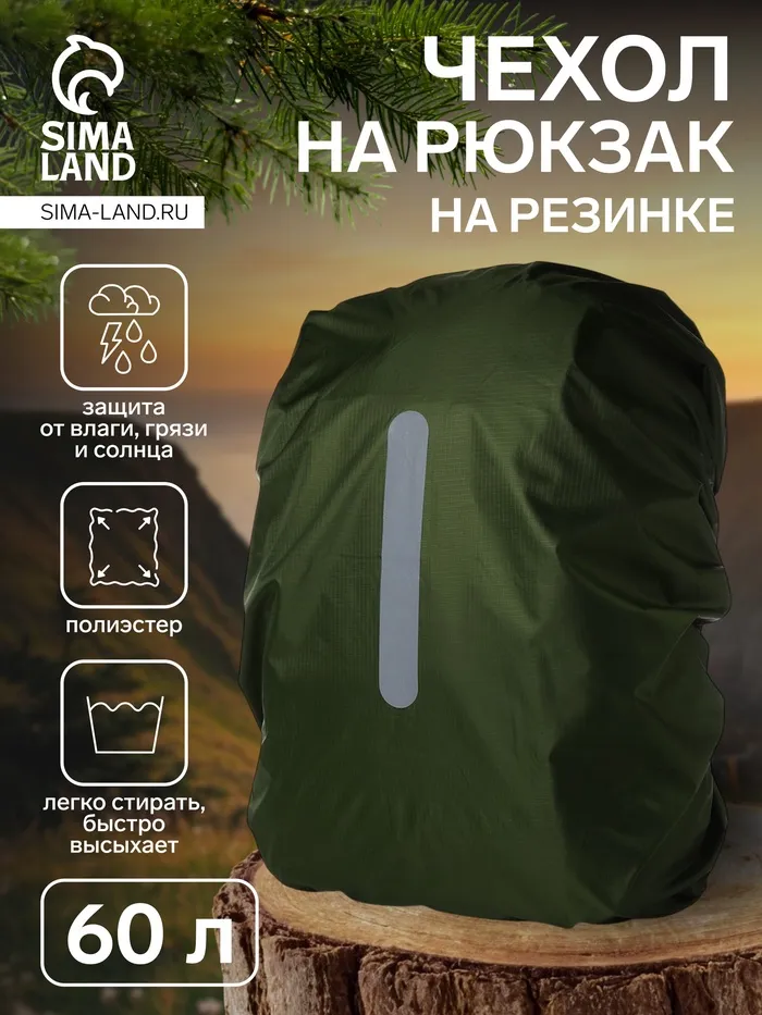 Чехол на рюкзак 60 л, со светоотражающей полосой, цвет зелёный — Характеристики