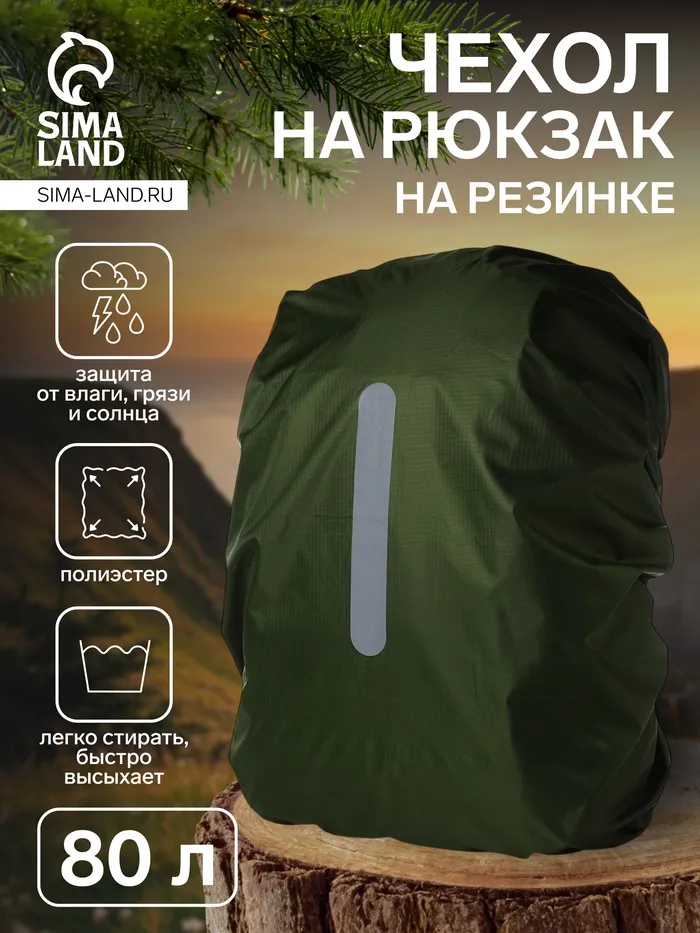 Чехол на рюкзак 80 л, со светоотражающей полосой, цвет зелёный — Характеристики