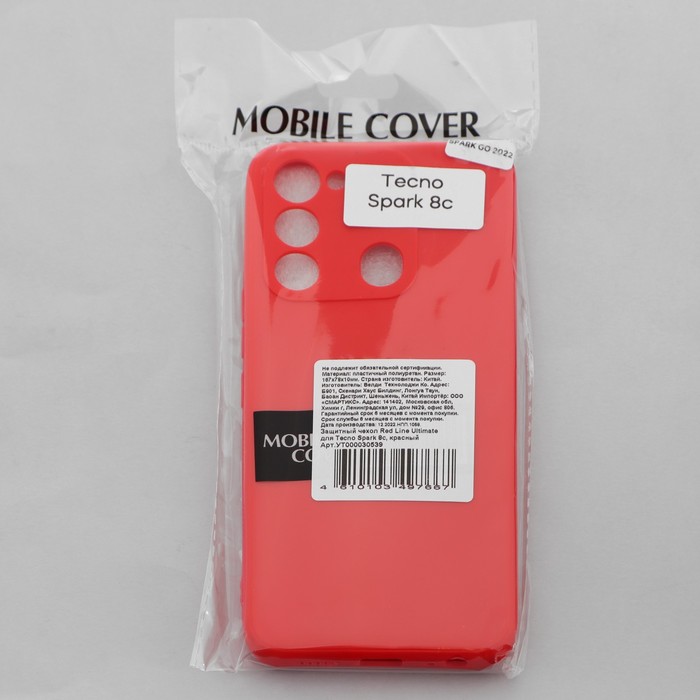 Чехол Red Line Ultimate, для телефона Tecno Spark 8c, силиконовый, красный — Характеристики