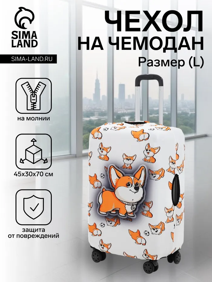 Чехол TEXTURA на чемодан на колёсах, 28" (L), с принтом «Корги», белый — Характеристики