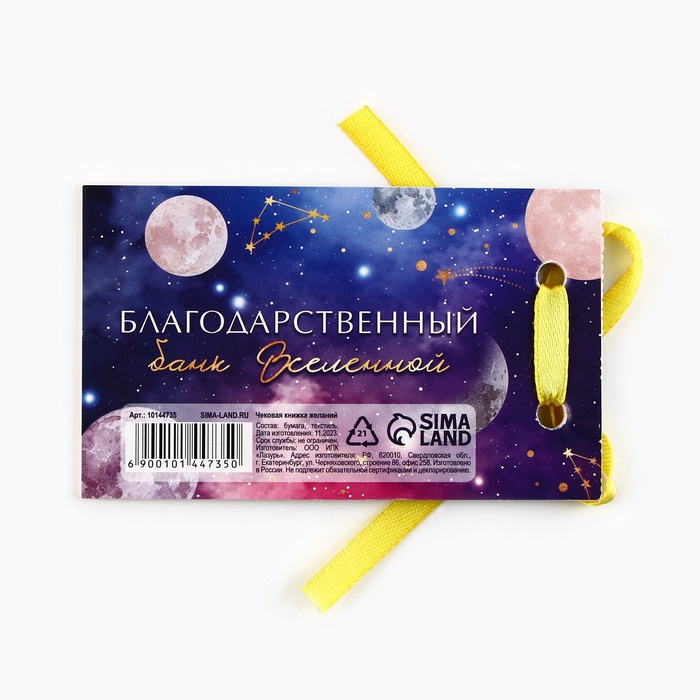 Чековая книжка желаний «Космос», 10 х 6 см — Характеристики