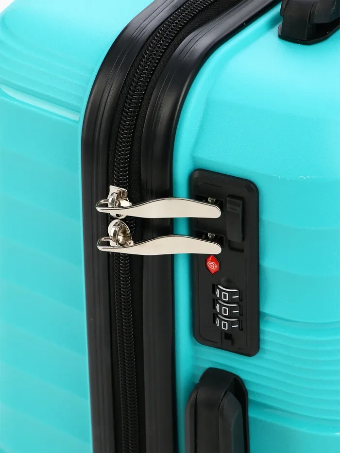 Чемодан 20", PP, 38*21*56, отд на молнии, код замок, 4 колеса, голубой — Характеристики