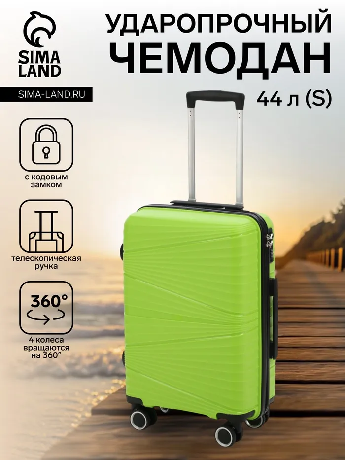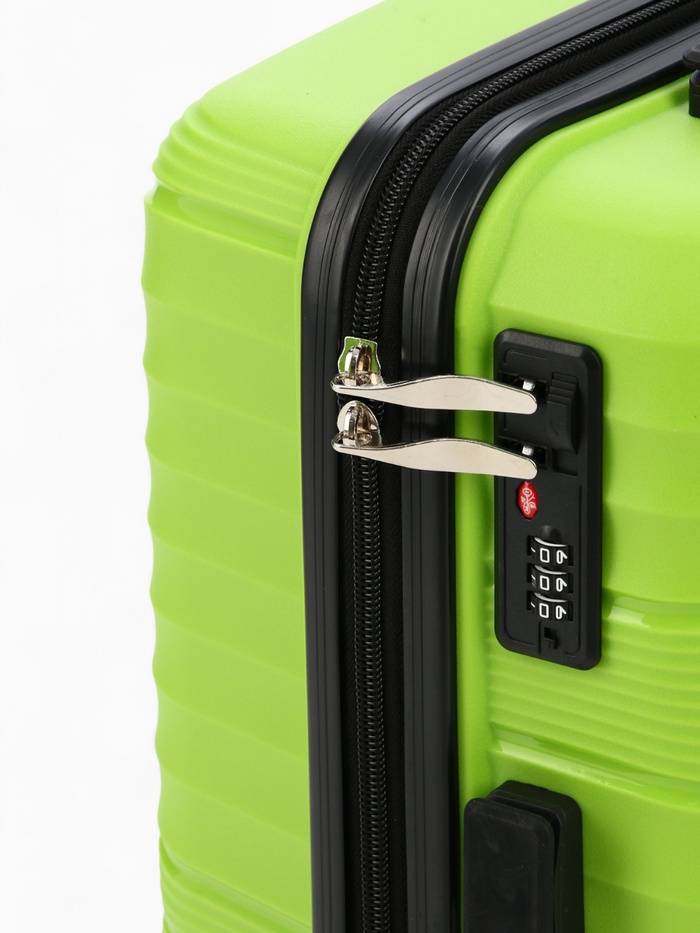 Чемодан 20", PP, 38*21*56, отд на молнии, код замок, 4 колеса, св. зеленый — Характеристики