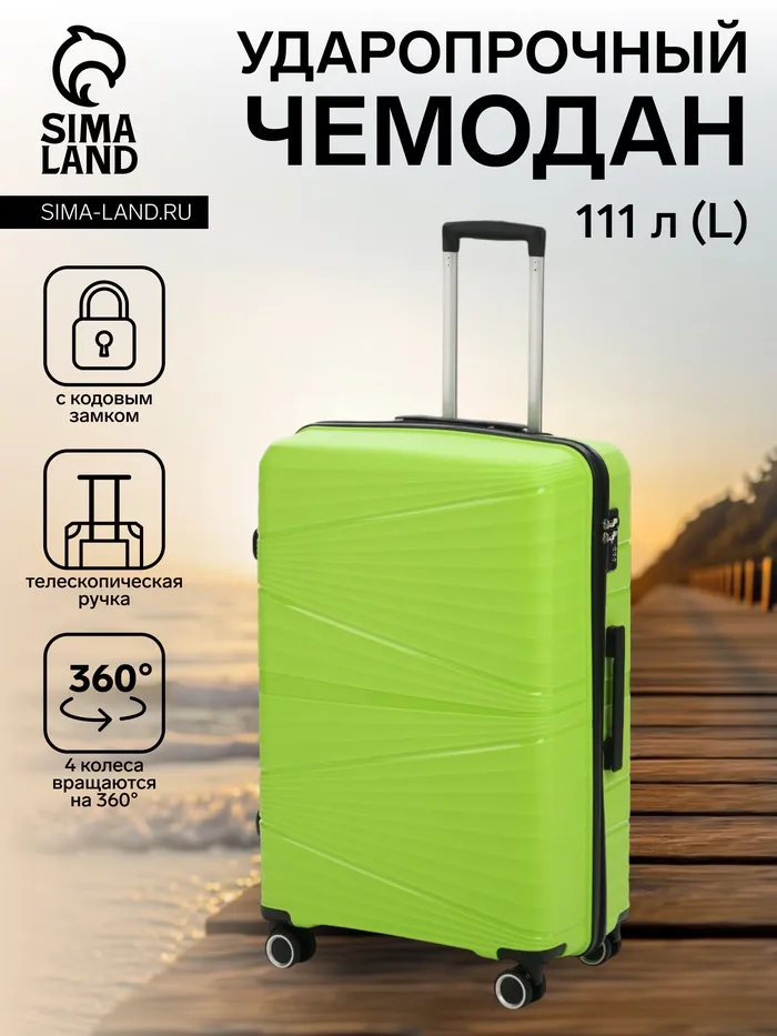 Чемодан 28", РР, 50*30*74, отд на молнии, код замок, 4 колеса, св. зеленый — Характеристики