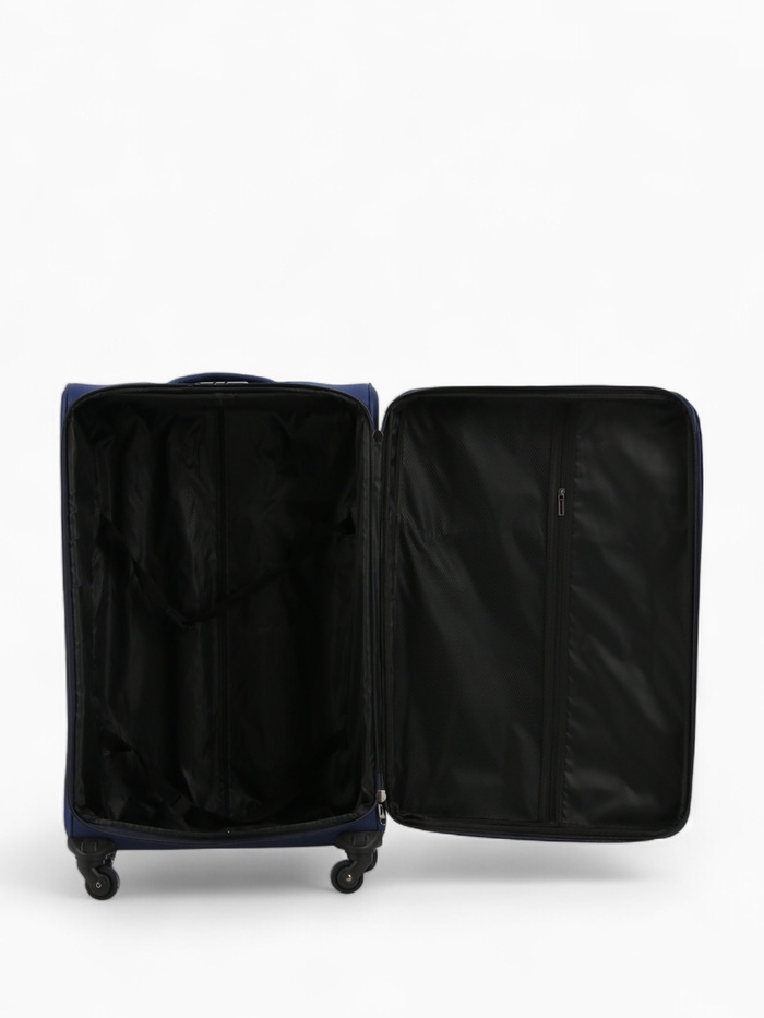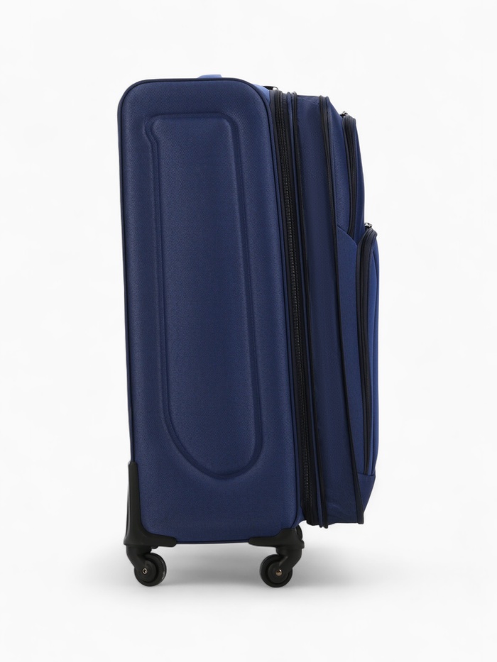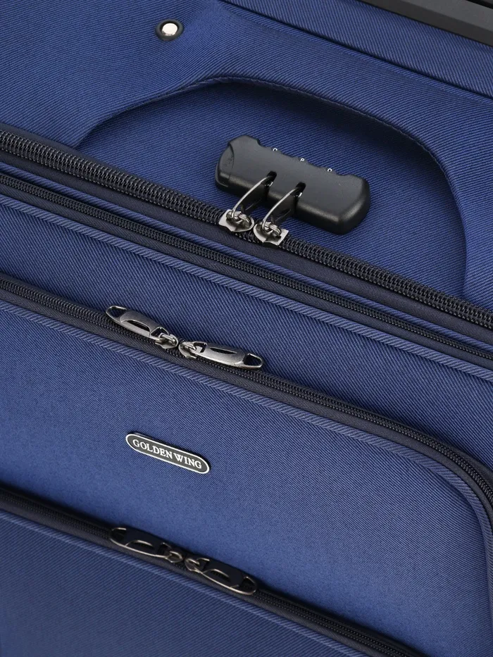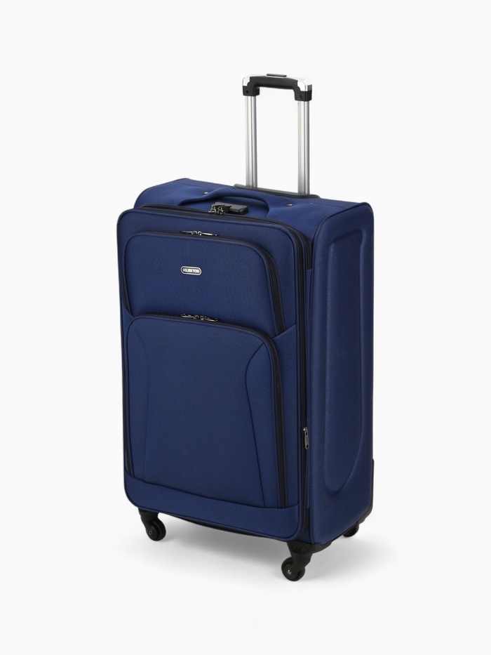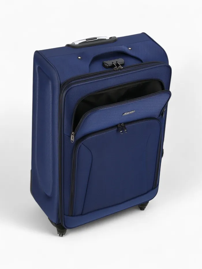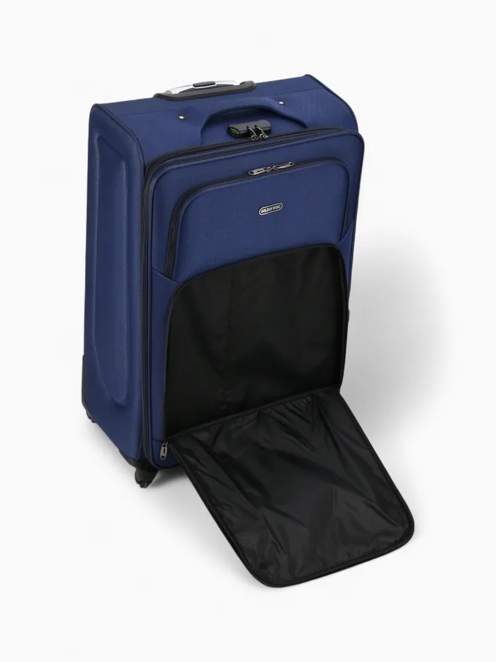 Чемодан 28", Текст, 45*28*77, отд на молнии, 2 нар/карм, увелич, код замок, 4 колеса, синий 108759 — Характеристики
