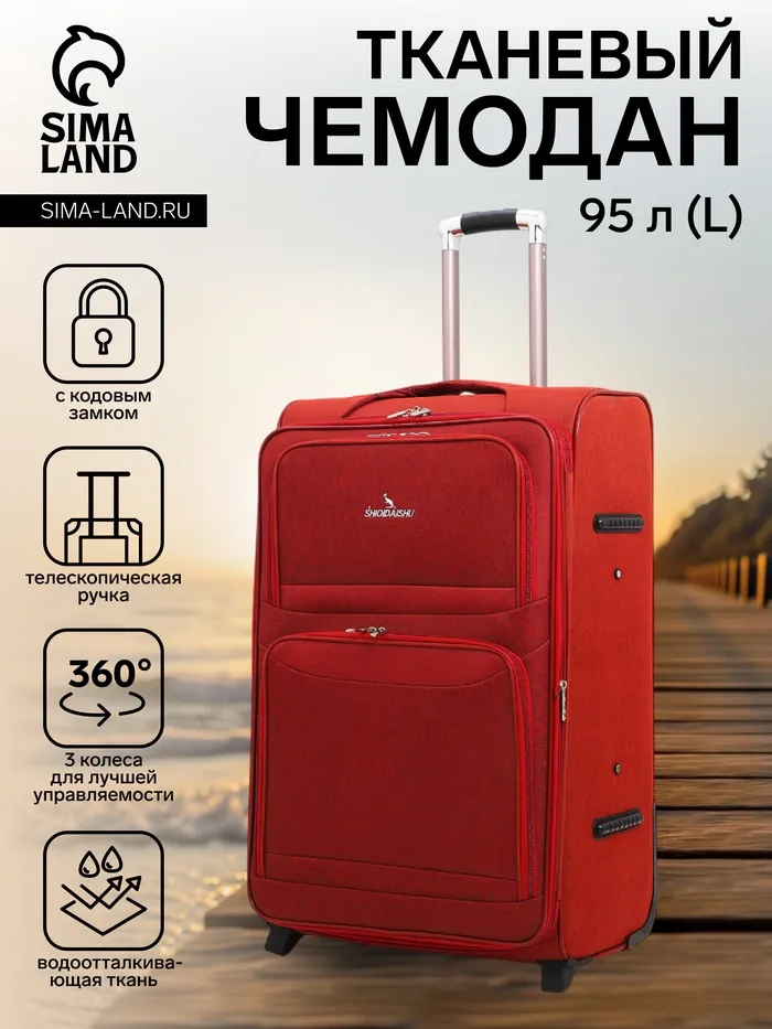Чемодан большой 95 л (L), отдел на молнии, с расширением, кодовый замок, 3 колеса, 2 наружных кармана, цвет красный — Характеристики