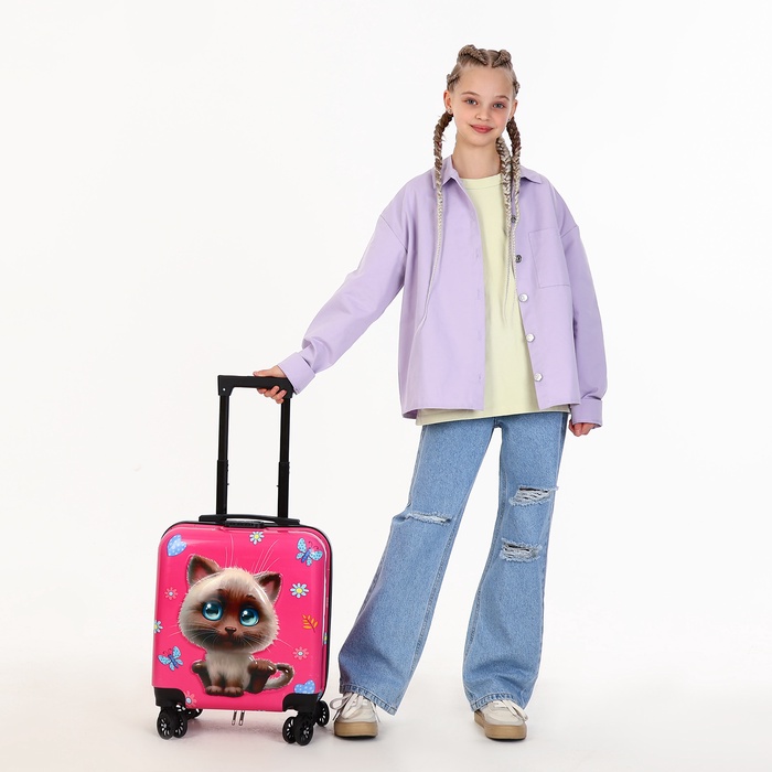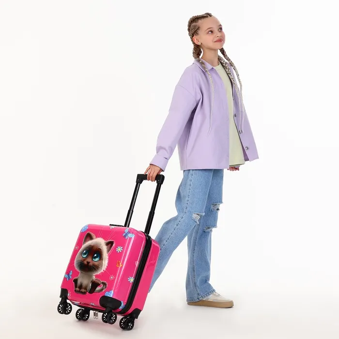 Чемодан детский 28 л (S), отдел на молнии, 4 колеса, цвет розовый — Характеристики