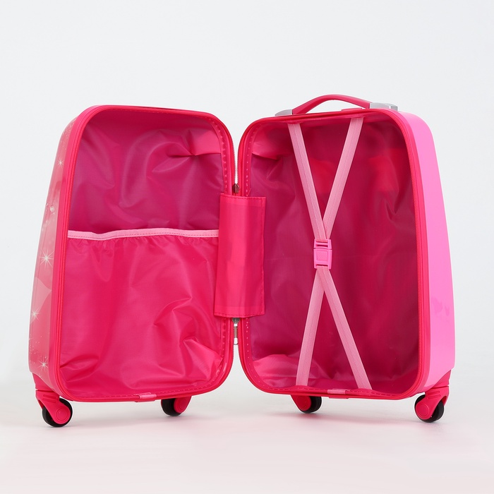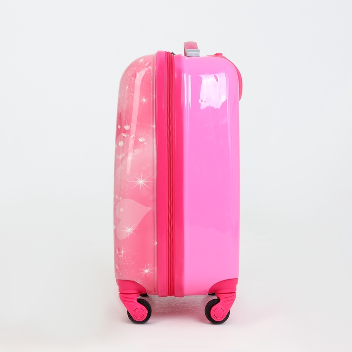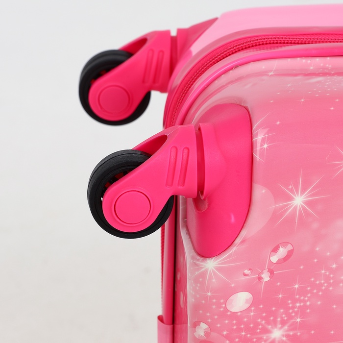 Этот детский чемодан создан для первых самостоятельных путешествий. Четыре колеса легко вращаются в любом направлении, помогая ребёнку управлять багажом без помощи взрослых. Нежно-розовый цвет и компактный размер делают его идеальным спутником для маленьких путешественниц.