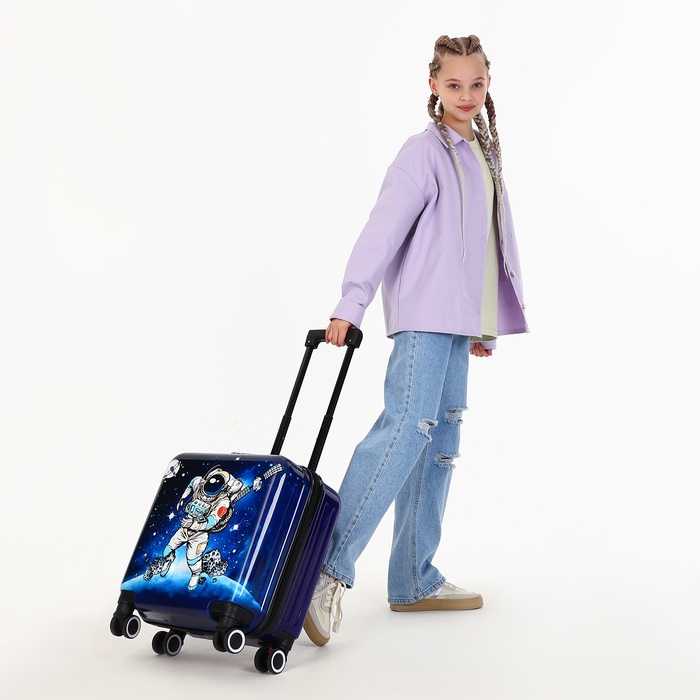 Чемодан детский на колёсах 41 л (S), на молнии, с кодовым замком, 4 колеса, синий — Характеристики