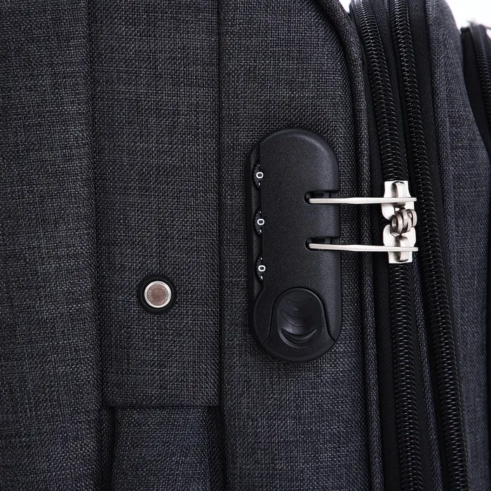 Чемодан малый 20" Goran Tomp, наружный карман, кодовый замок, чёрный — Характеристики