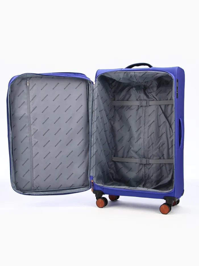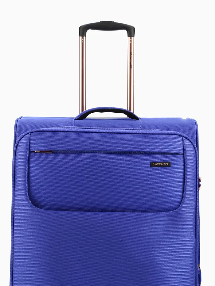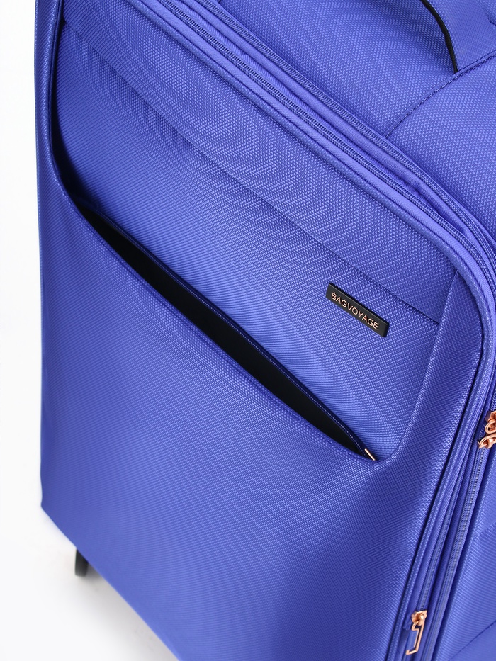 Чемодан на колёсах Bagvoyage большой 113 л (L), на молнии, с увеличением, кодовый замок, 4 колеса, васильковый — Характеристики