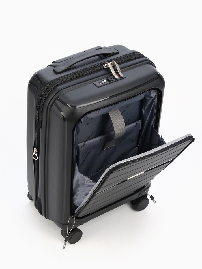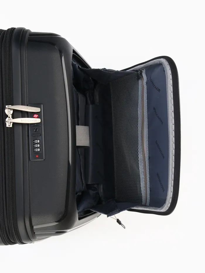 Чемодан на колёсах Bagvoyage маленький 46 л (S), на молнии, с увеличением, отдел для ноутбука, кодовый замок, 4 колеса, чёрный — Характеристики