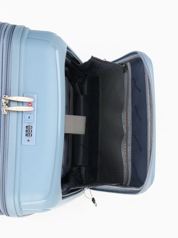 Чемодан на колёсах Bagvoyage маленький 46 л (S), на молнии, с увеличением, отдел для ноутбука, кодовый замок, 4 колеса, голубой — Характеристики
