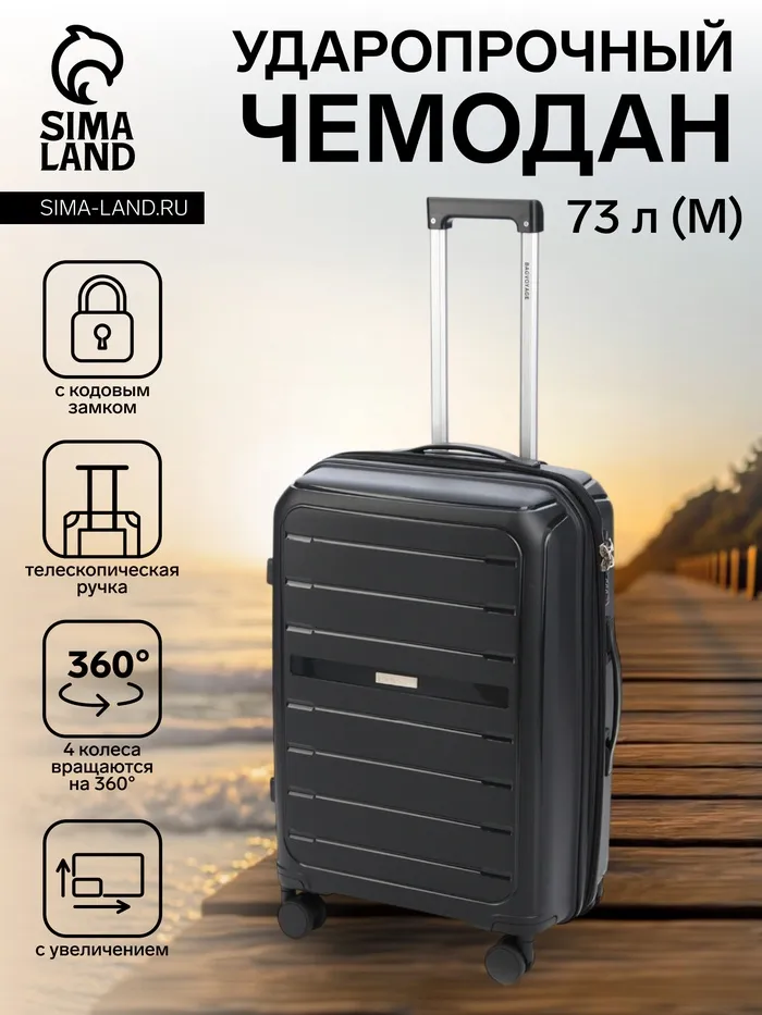 Чемодан на колёсах Bagvoyage средний 73 л (М), на молнии, с увеличением, кодовый замок, 4 колеса, чёрный — Характеристики