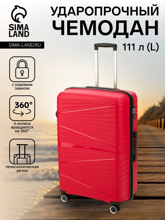 Чемодан на колёсах большой 111 л (L), на молнии, кодовый замок, 4 колеса, алый — Характеристики
