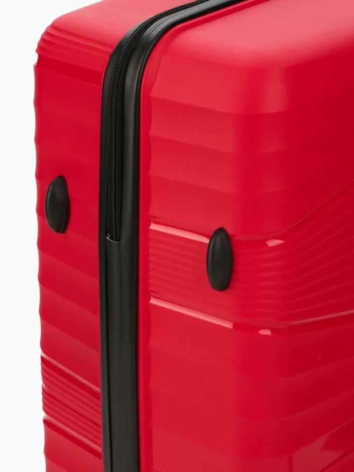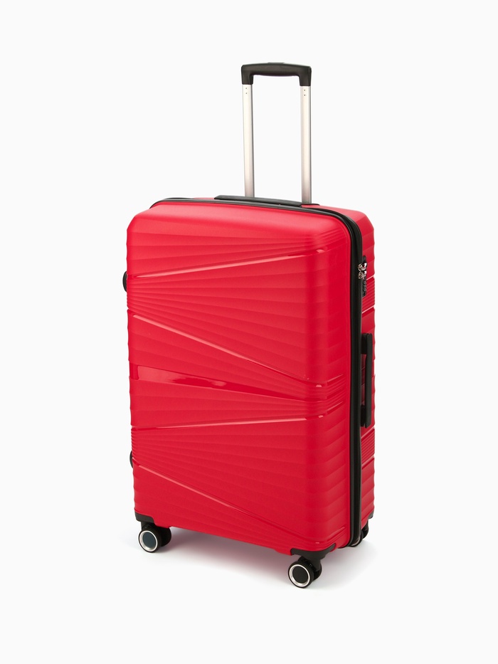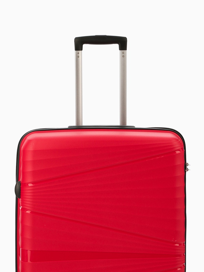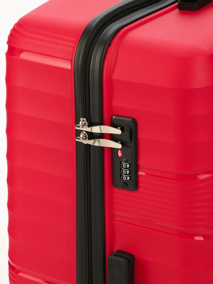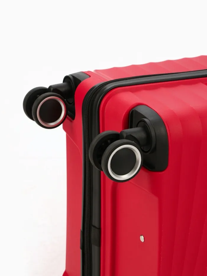 - Эстетически привлекательный красный цвет делает чемодан выделяющимся среди других.