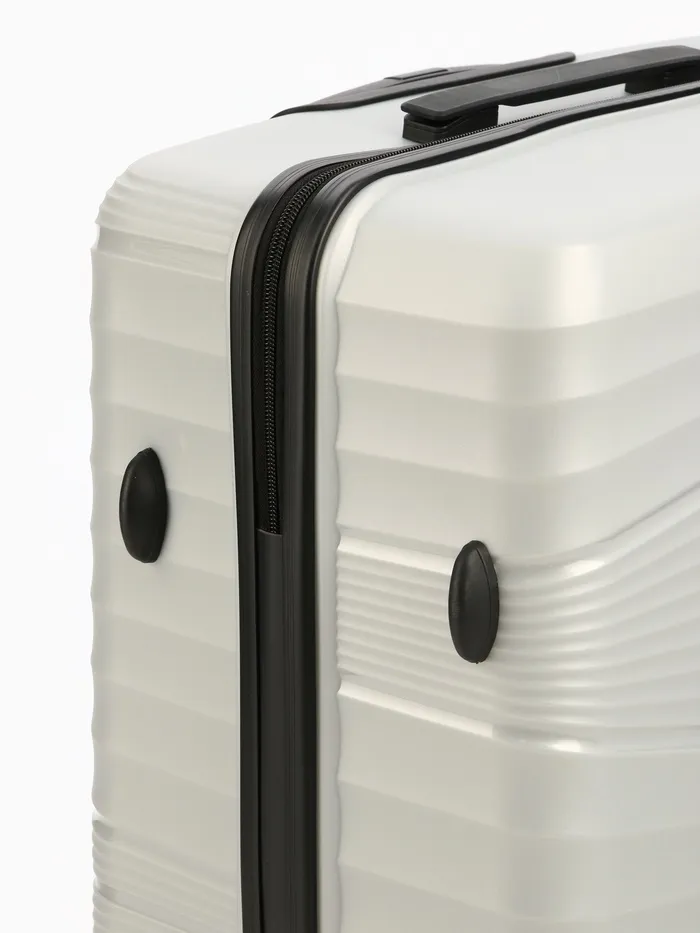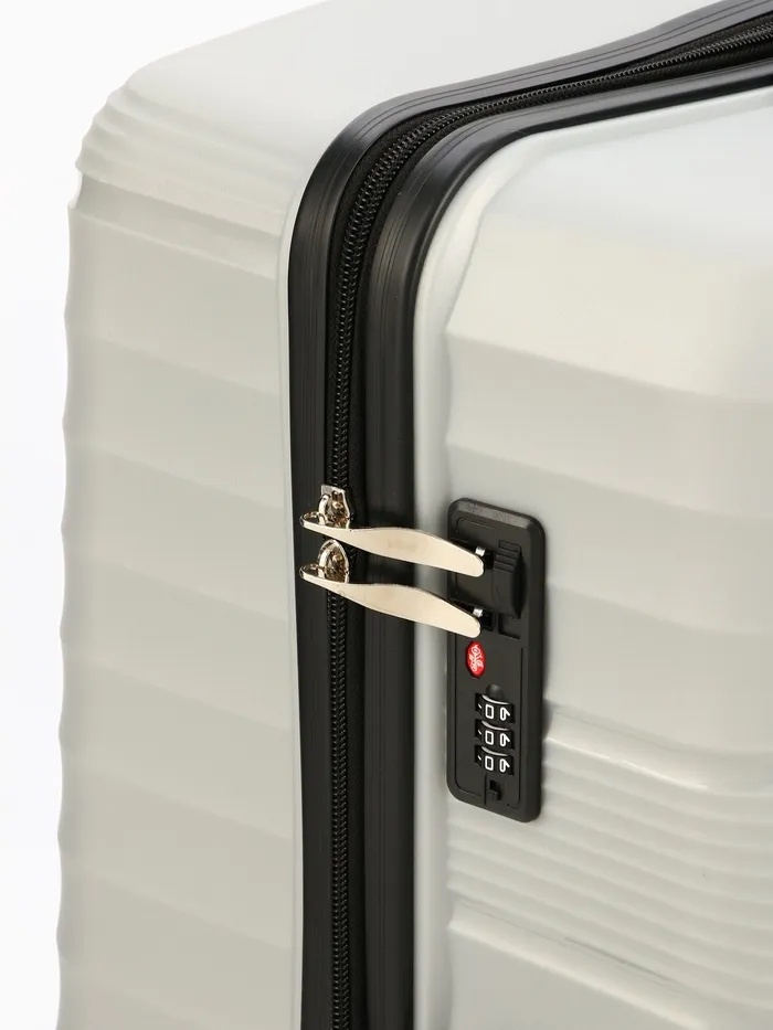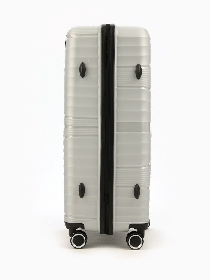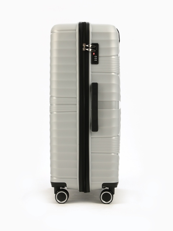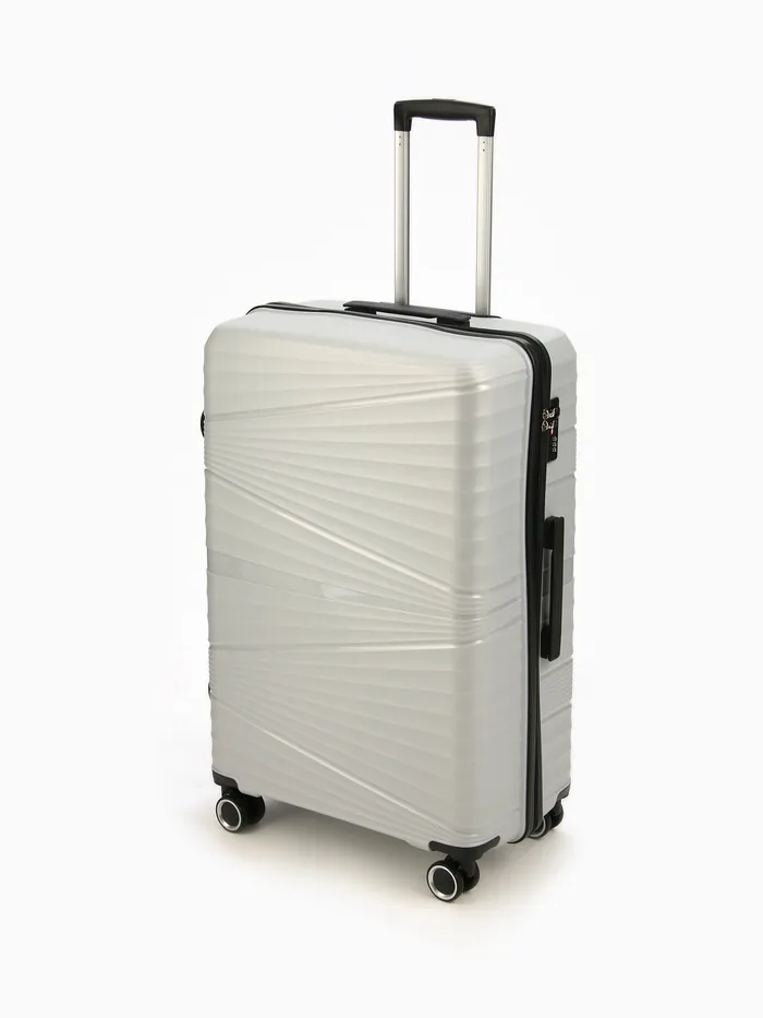 Путешествуйте стильно с универсальным чемоданом на колесах 28". Идеальный выбор для тех, кто ценит практичность и надежность в каждой детали. С четырьмя прочными колесами и встроенным кодовым замком, он обеспечивает безопасность вашего багажа без лишних хлопот. Строгий светло-серый оттенок и прочный полипропилен делают этот дорожный аксессуар идеальным спутником как для деловых поездок, так и для спонтанных приключений.