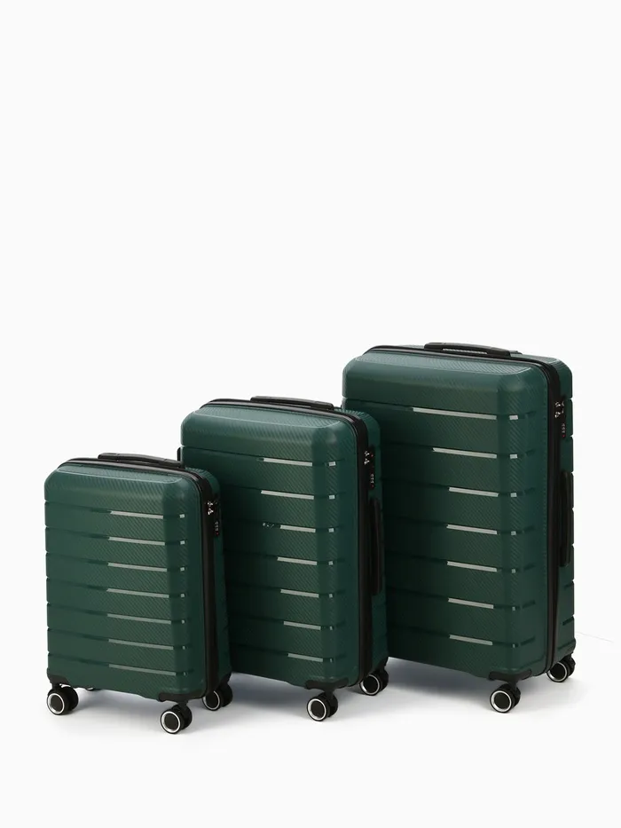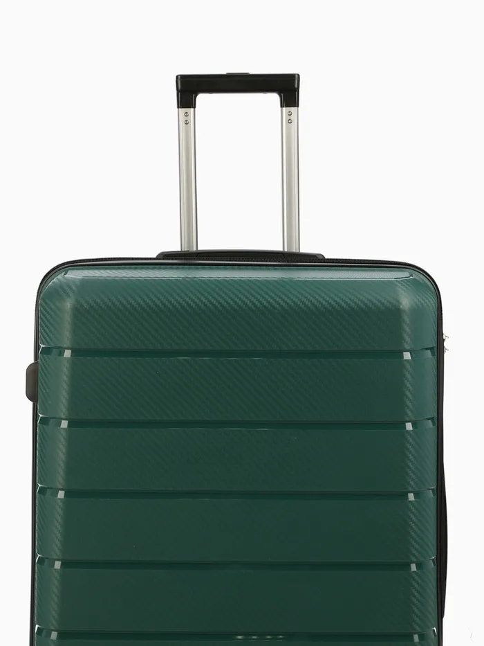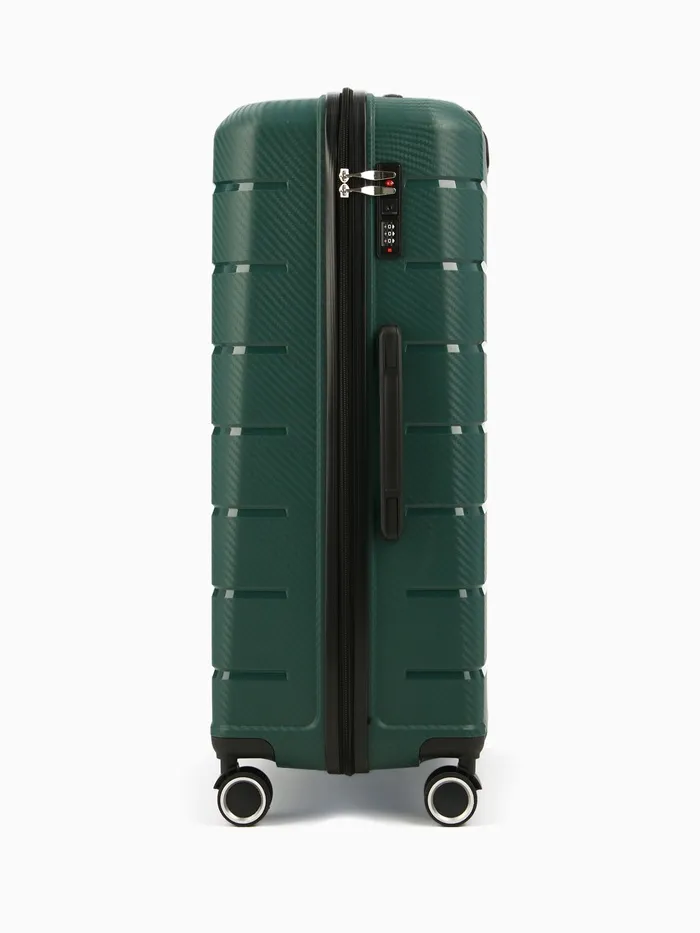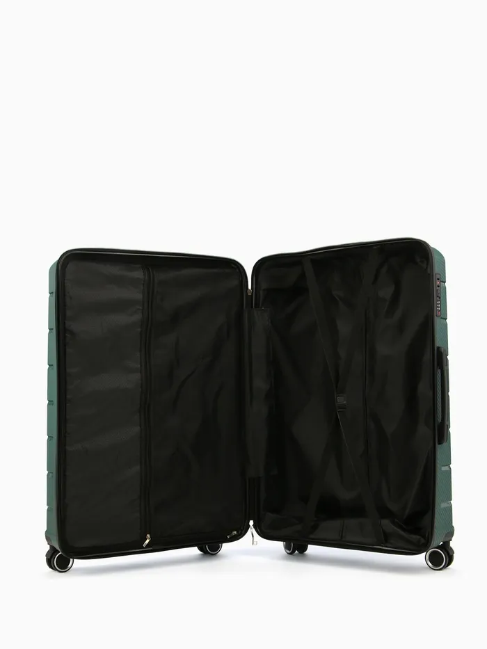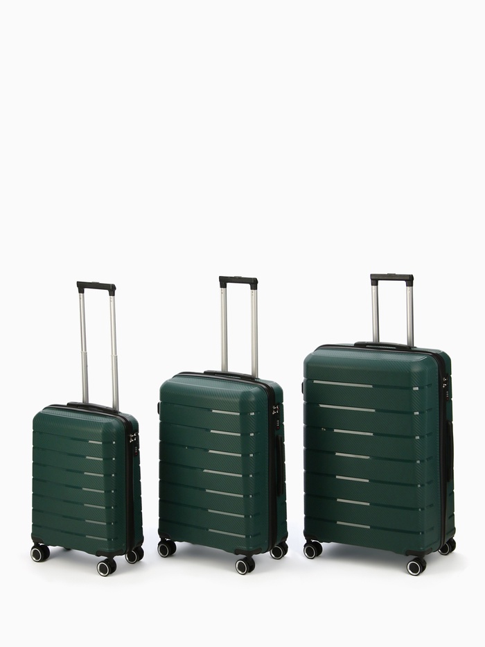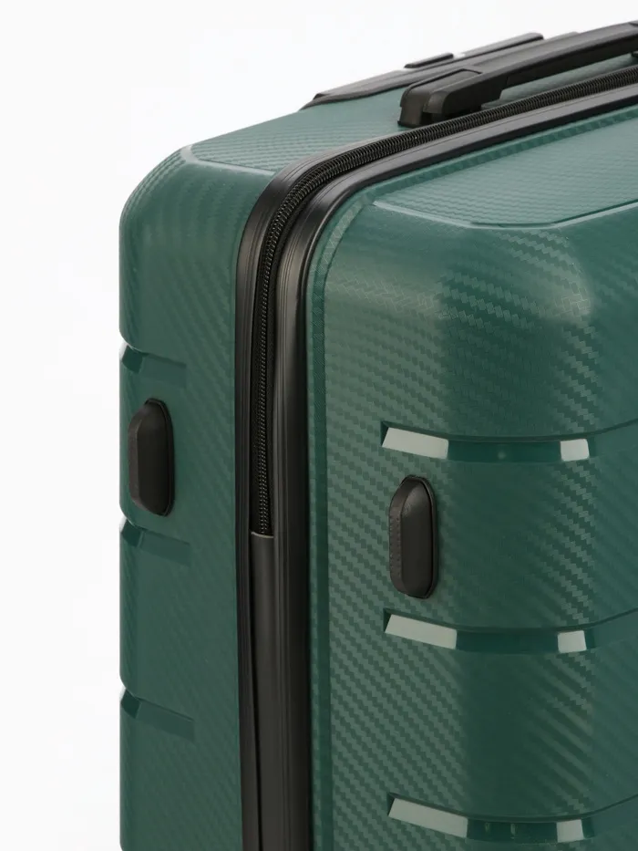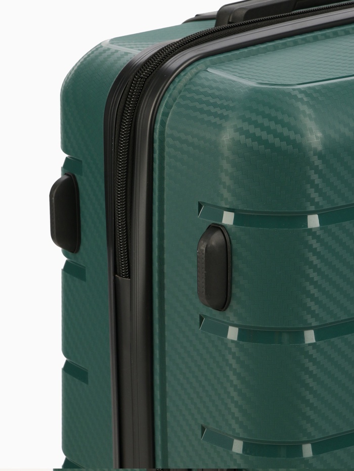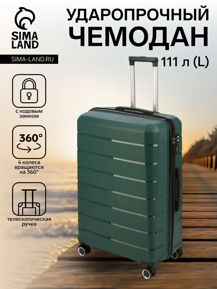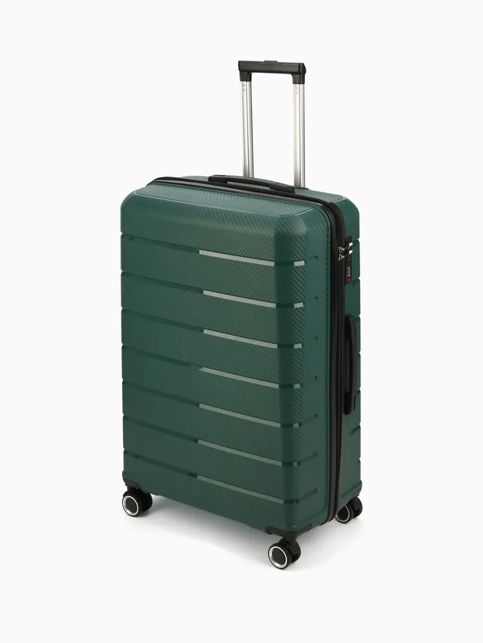 Чемодан на колёсах маленький 111 л (L), на молнии, кодовый замок, 4 колеса, зелёный — Характеристики