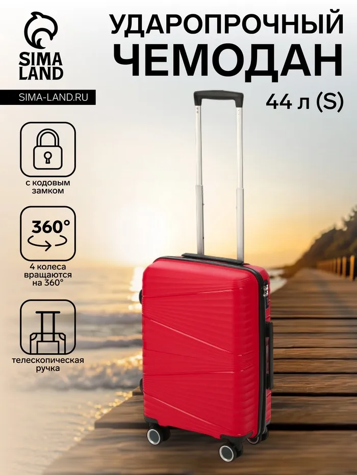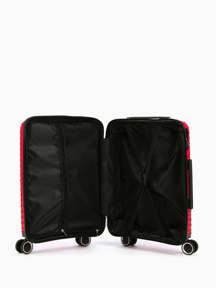 Чемодан на колёсах маленький 44 л (S), на молнии, кодовый замок, 4 колеса, алый — Характеристики