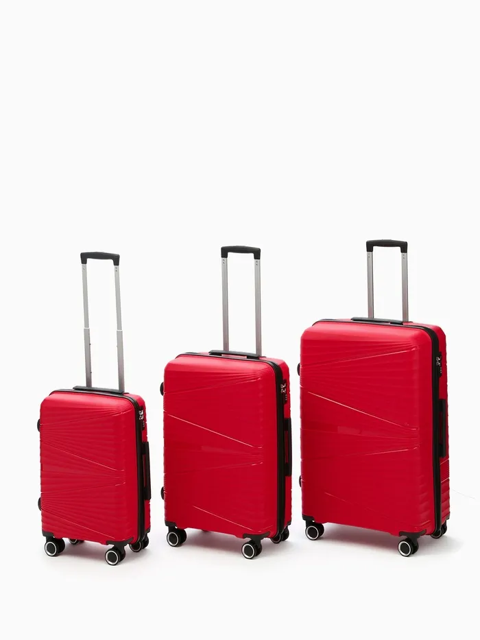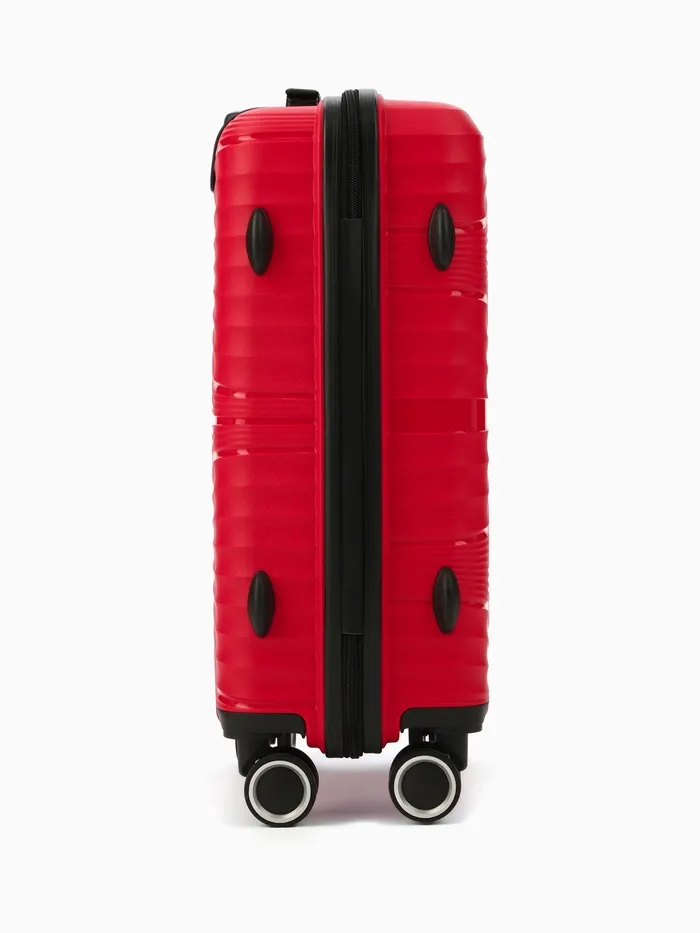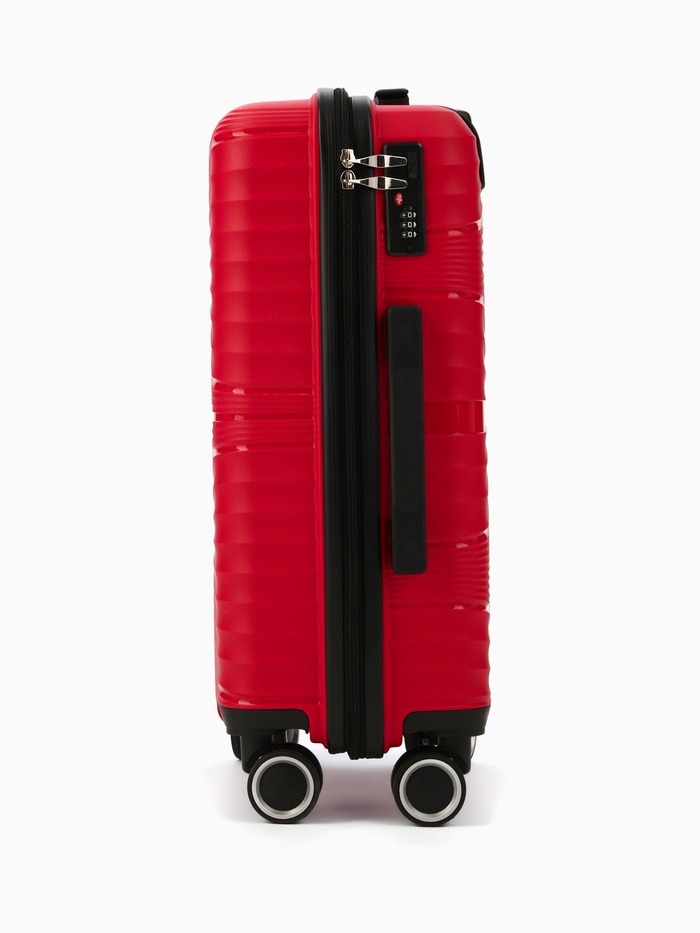 Компактный красный дорожный чемодан на колесах станет вашим надежным спутником в путешествиях. Легкий и прочный, он создан для тех, кто ценит практичность и стиль. Изготовлен из устойчивого полипропилена, этот аксессуар обеспечивает сохранность ваших вещей и удобство перемещения благодаря четырем маневренным колесам и встроенному кодовому замку для дополнительной безопасности.