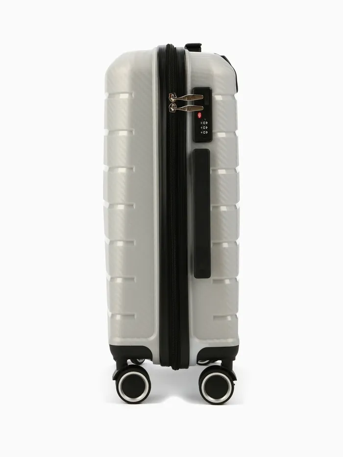 Чемодан на колёсах маленький 44 л (S), на молнии, кодовый замок, 4 колеса, серый — Характеристики