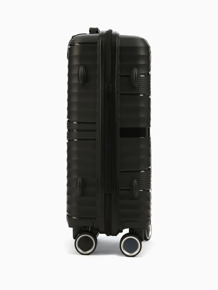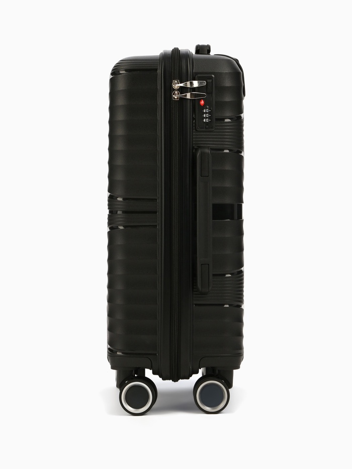 Черный чемодан на колесах 44 л — идеальный спутник для коротких поездок и деловых путешествий. Его компактный 20-дюймовый размер и современный дизайн обеспечивают комфорт и стиль. Полипропилен, из которого изготовлен чемодан, гарантирует легкость и прочность. Кодовый замок защитит ваши вещи от нежелательных вмешательств, а четыре маневренных колеса позволят с легкостью передвигаться в любом направлении. Универсальная модель подойдет как мужчинам, так и женщинам, обеспечивая оптимальное сочетание функциональности и эстетики.