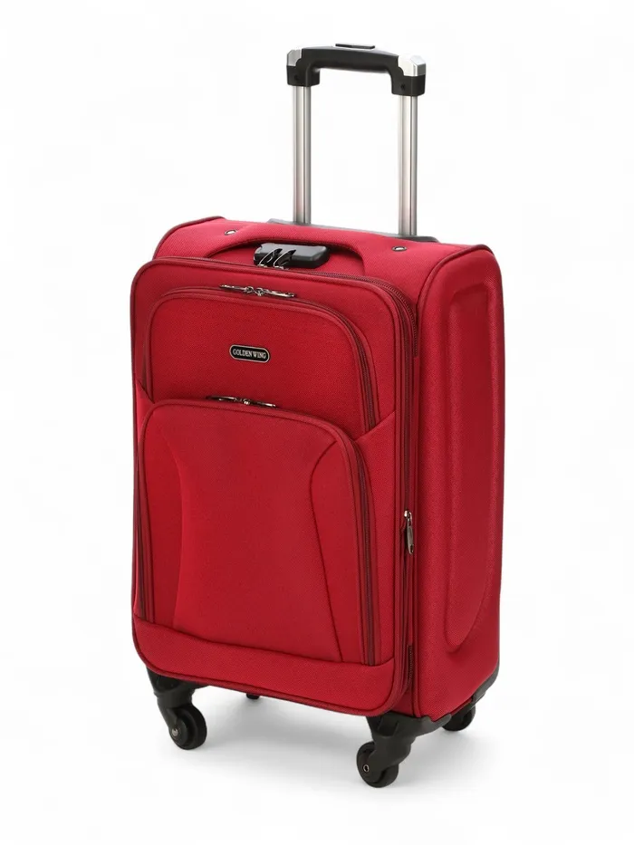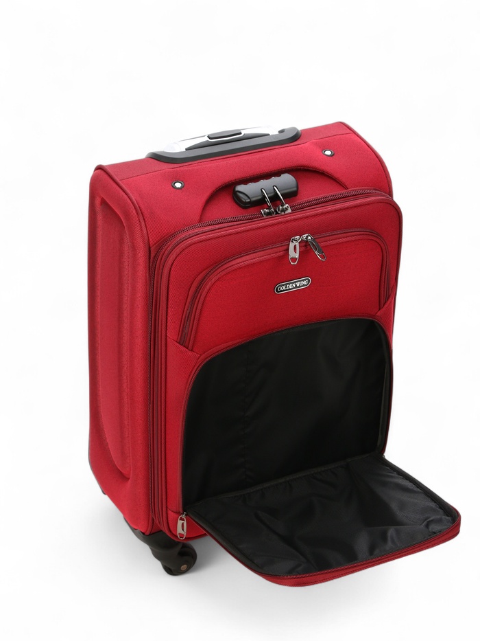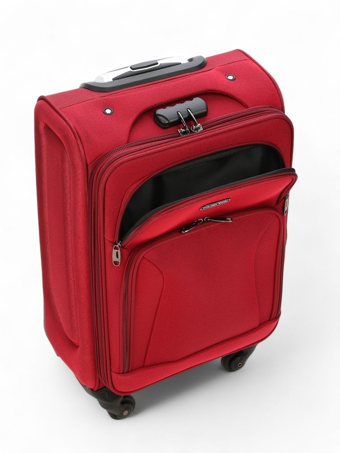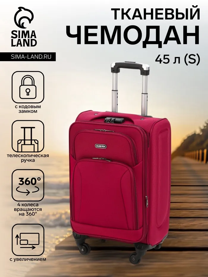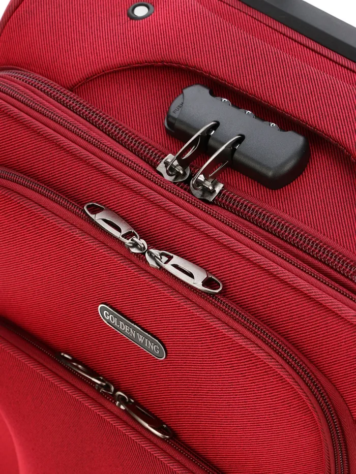 Чемодан на колёсах маленький 45 л (S), на молнии, с увеличением, кодовый замок, 4 колеса, красный — Характеристики