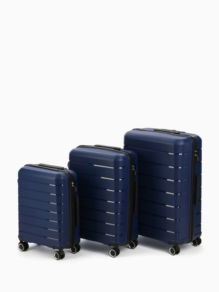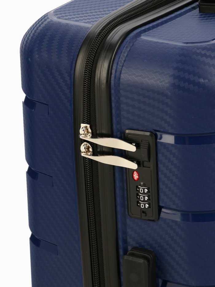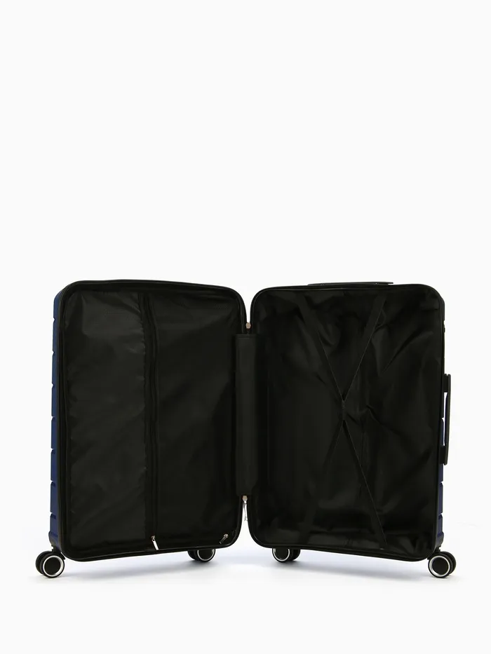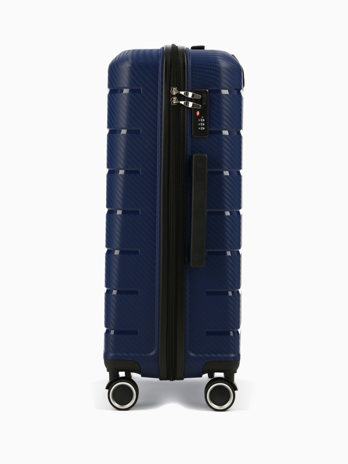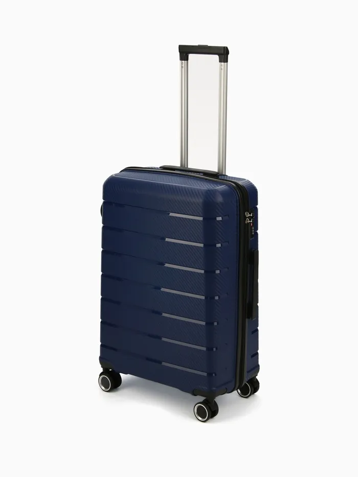 Чемодан на колёсах маленький 75 л (М), на молнии, кодовый замок, 4 колеса, синий — Характеристики
