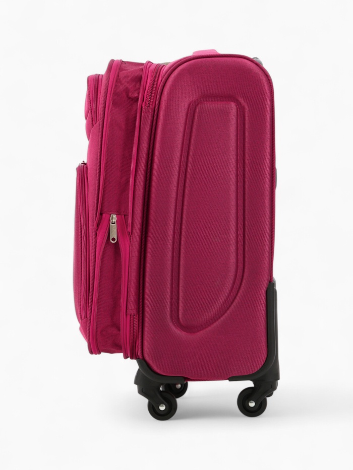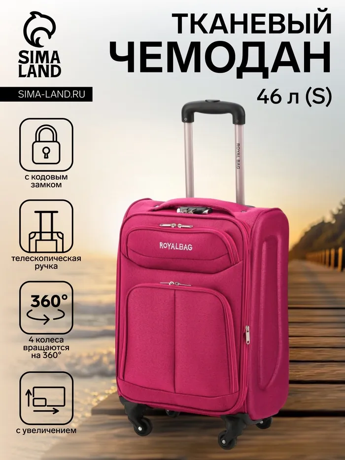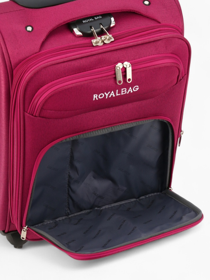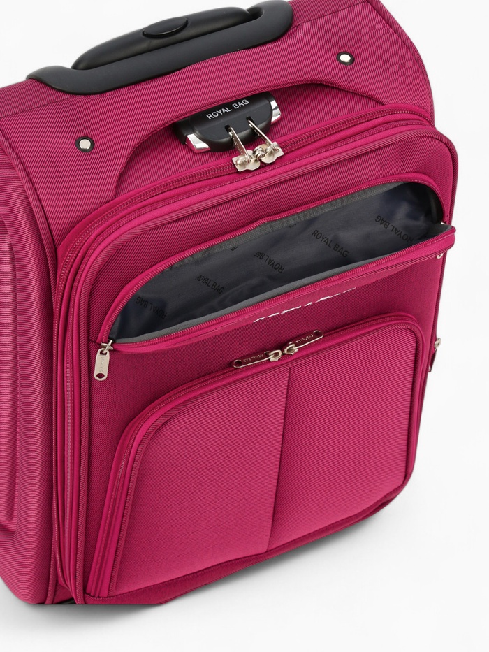 Чемодан на колёсах Royalbag маленький 46 л (S), на молнии, с увеличением, кодовый замок, 4 колеса, розовый — Характеристики