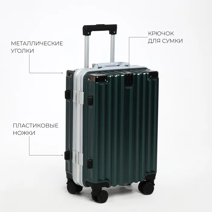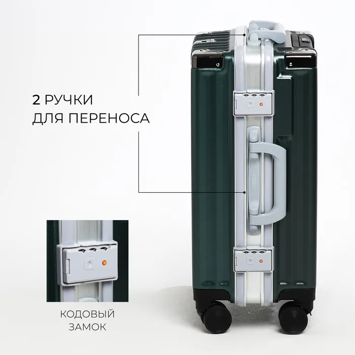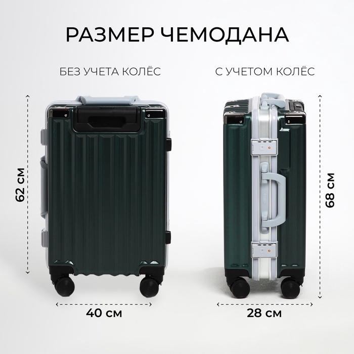 Чемодан на колёсах средний 55 л (M), 2 кодовых замка, 4 колеса, крючок, зелёный — Характеристики