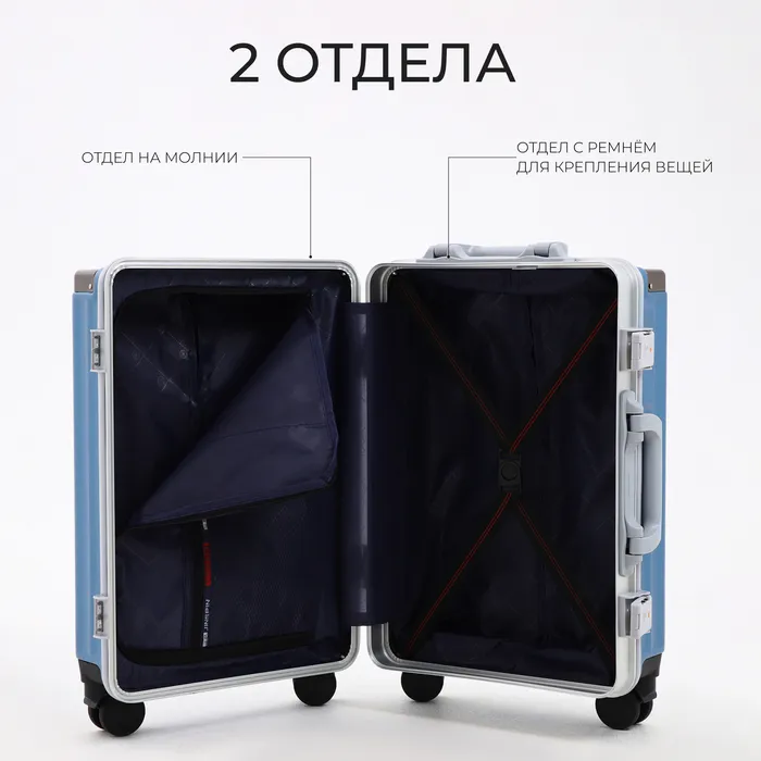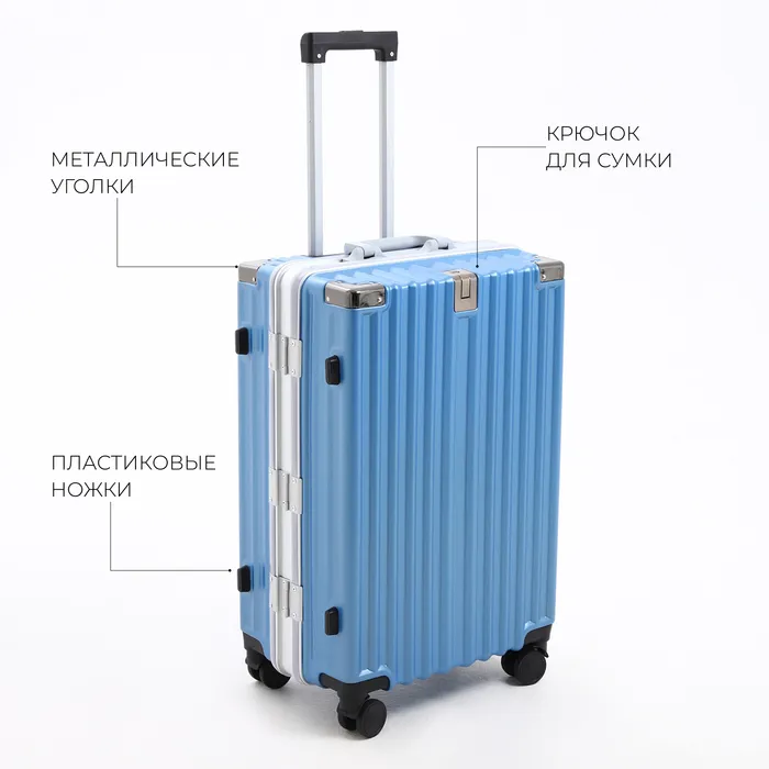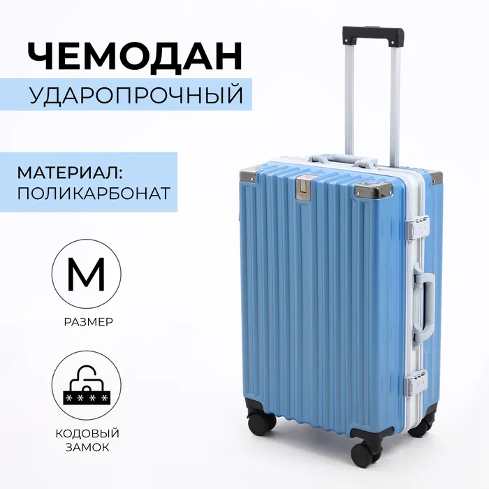 Чемодан на колёсах средний 55 л (M), на молнии, 2 кодовых замка, 4 колеса, крючок, синий — Характеристики