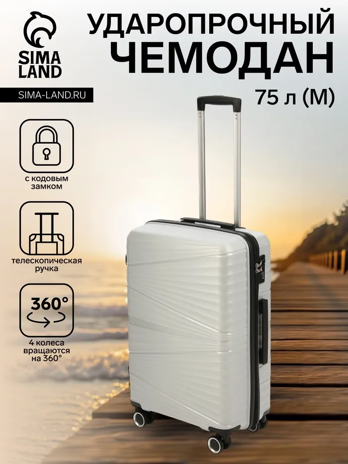 Чемодан на колёсах средний 75 л (М), на молнии, кодовый замок, 4 колеса, светло-серый — Характеристики