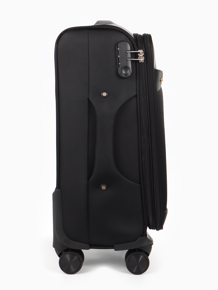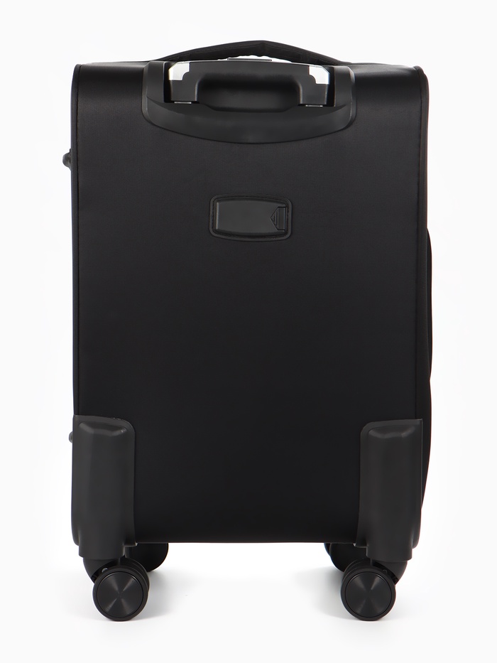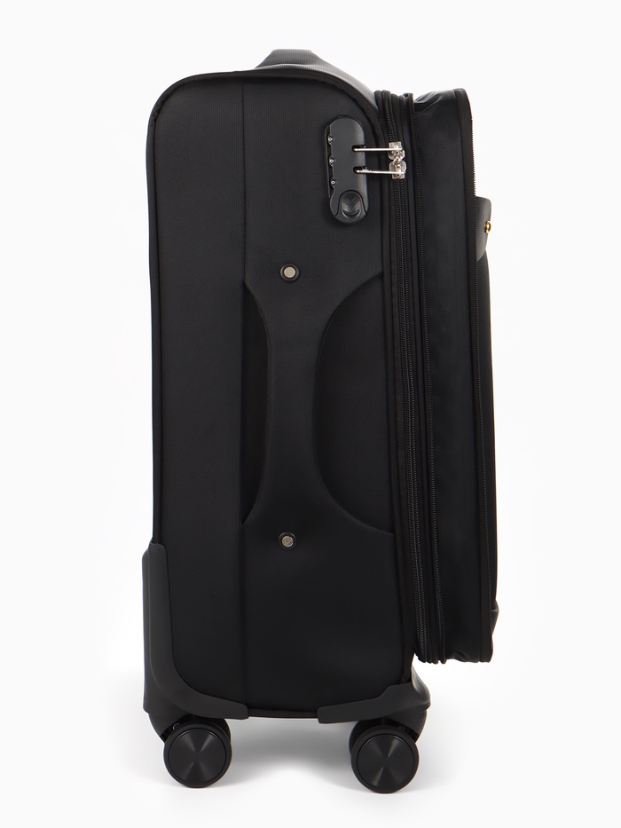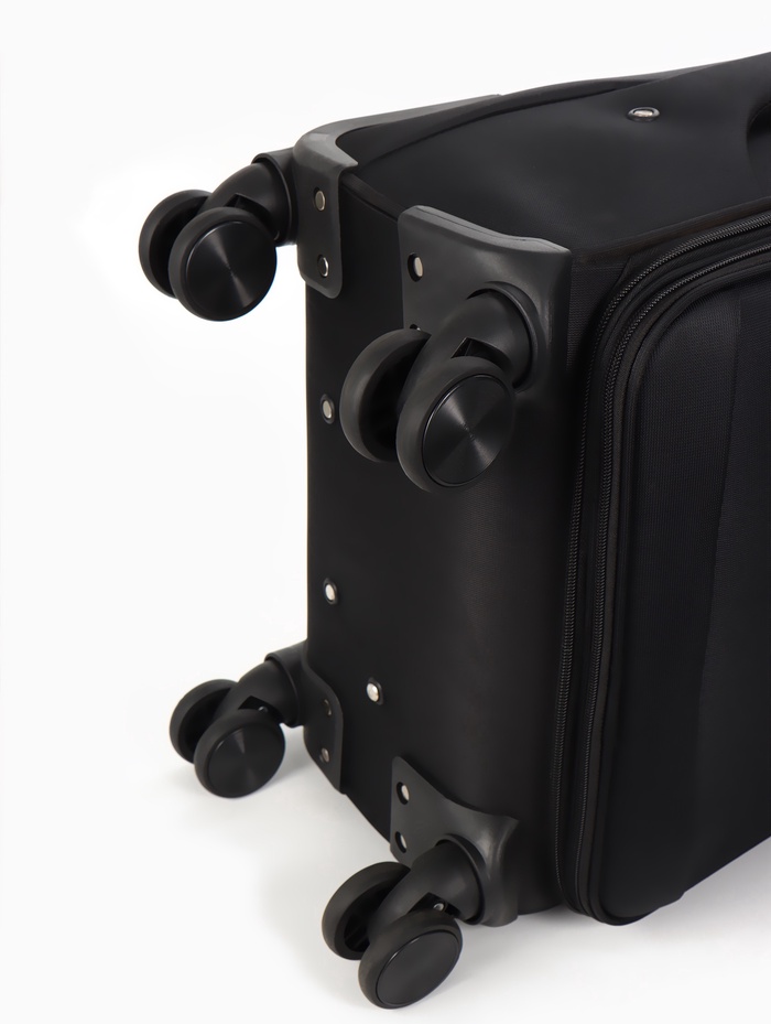 Чёрный текстильный чемодан на четырёх колёсах — ваш надёжный спутник в любых поездках. Его лаконичный дизайн и продуманная конструкция решают главные задачи путешественника: мобильность, вместимость и безопасность. Кодовый замок защищает вещи, а система увеличения добавляет ценные литры объёма, если планы меняются. Чемодан легко катится в аэропорту, помещается в ручную кладь и готов к новым маршрутам.