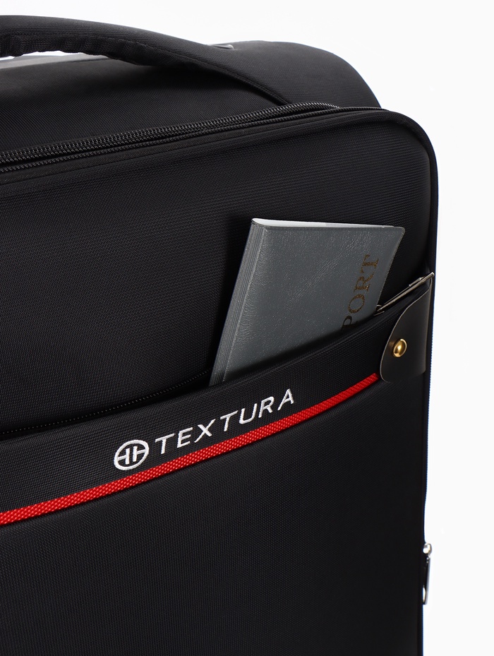 Чемодан на колёсах TEXTURA, 52 л, кодовый замок, текстильный, с увеличением, 36×25×58 см, 20", чёрный — Характеристики