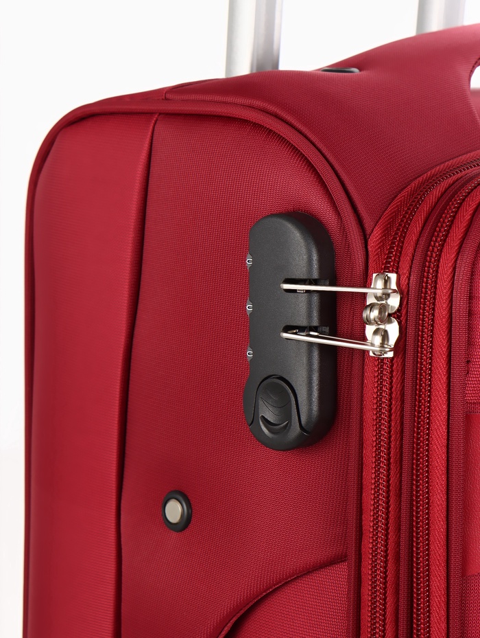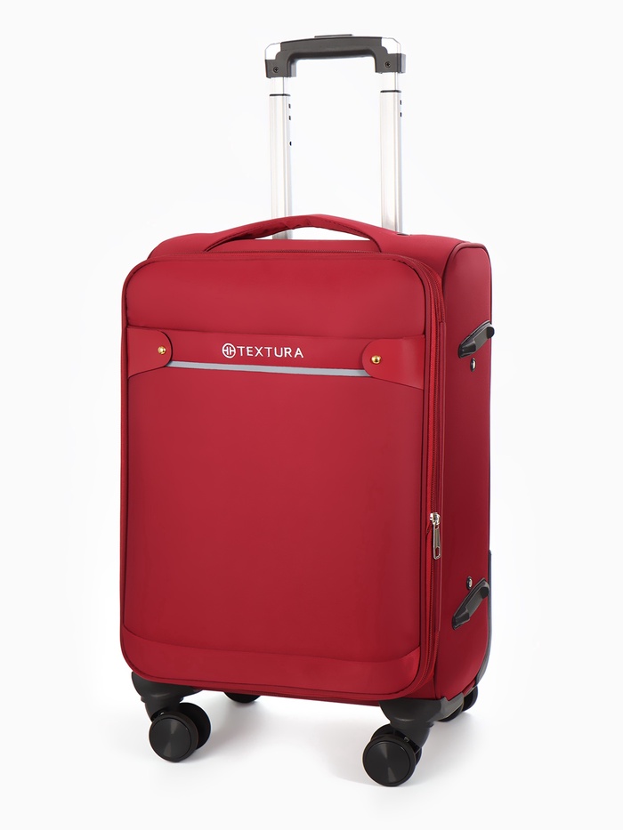 Чемодан на колёсах TEXTURA, 52 л, текстильный, кодовый замок, с увеличением, 36×25×58 см, 20", красный — Характеристики