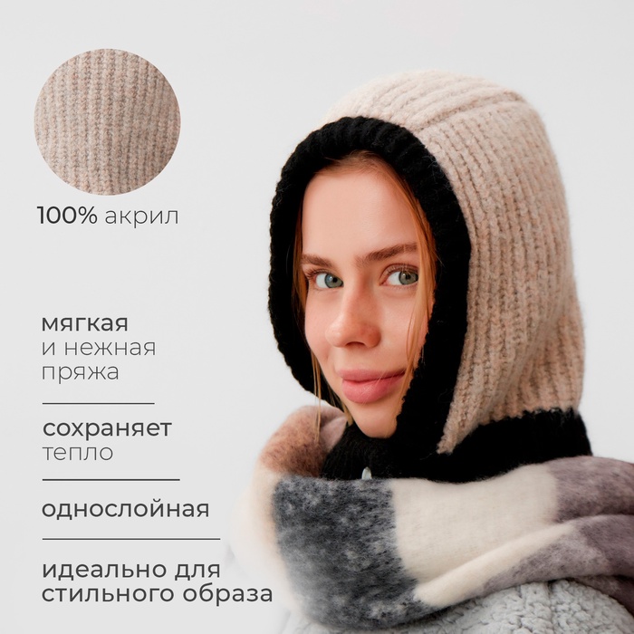 Чепчик женский MINAKU, цвет песочный/черный, р-р 56-58 — Характеристики
