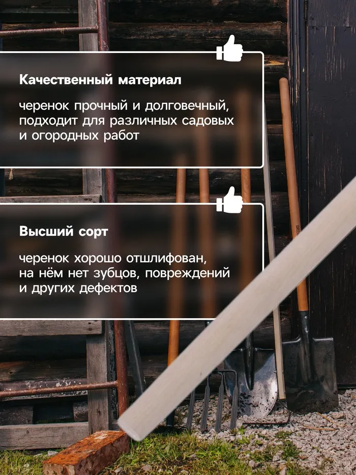 Черенок используется в качестве рукояти для лопаты, вил, швабры, граблей и другого садового инструмента.