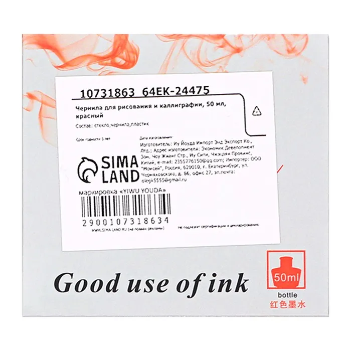 Чернила для рисования и каллиграфии, 50 мл, красный — Характеристики