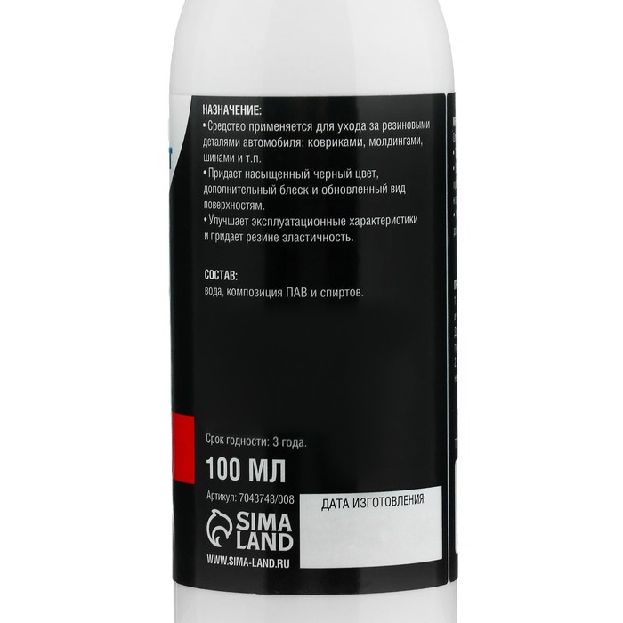 Средство применяется для ухода за резиновыми деталями автомобиля: ковриками, молдингами, шинами и т.п.